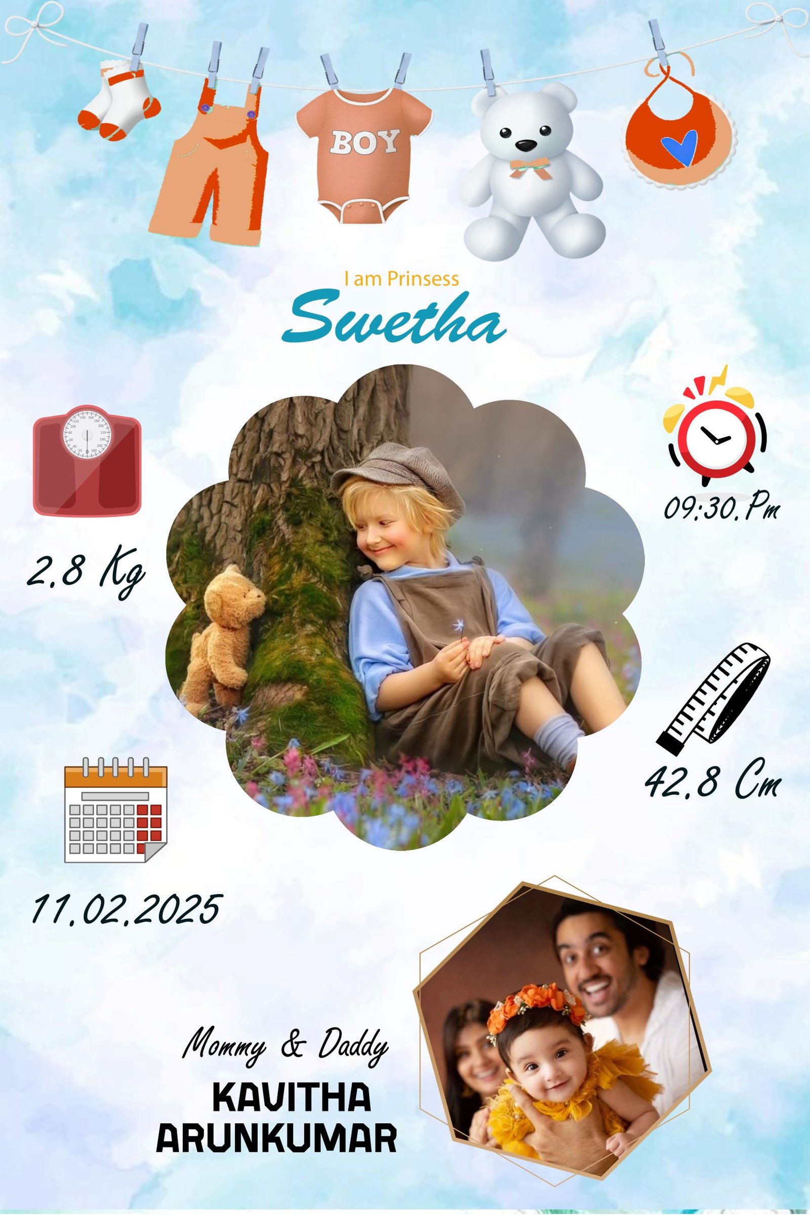 Welcome your little bundle of joy with our Newborn Baby Frame — a precious keepsake that captures the magic of your baby’s arrival. Customize it with the baby’s name, birth date, weight, or a heartfelt message. Featuring soft pastel colors and baby-themed design elements, this frame is perfect for nurseries, baby showers, or as a thoughtful gift to new parents. Crafted with care, it beautifully preserves the joy of your baby’s first memories.