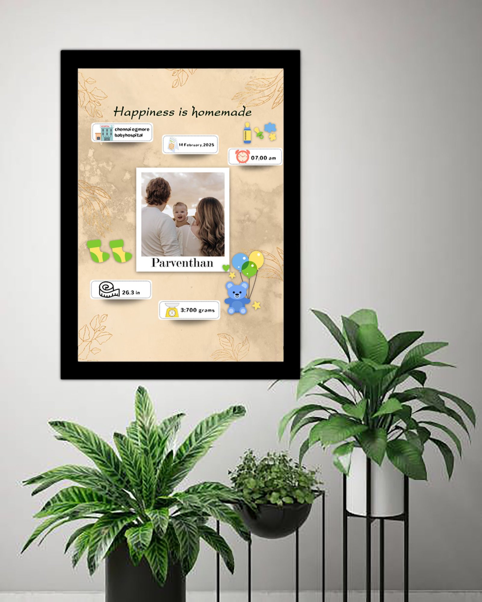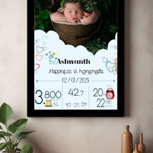 Welcome your little bundle of joy with our Newborn Baby Frame — a precious keepsake that captures the magic of your baby’s arrival. Customize it with the baby’s name, birth date, weight, or a heartfelt message. Featuring soft pastel colors and baby-themed design elements, this frame is perfect for nurseries, baby showers, or as a thoughtful gift to new parents. Crafted with care, it beautifully preserves the joy of your baby’s first memories.